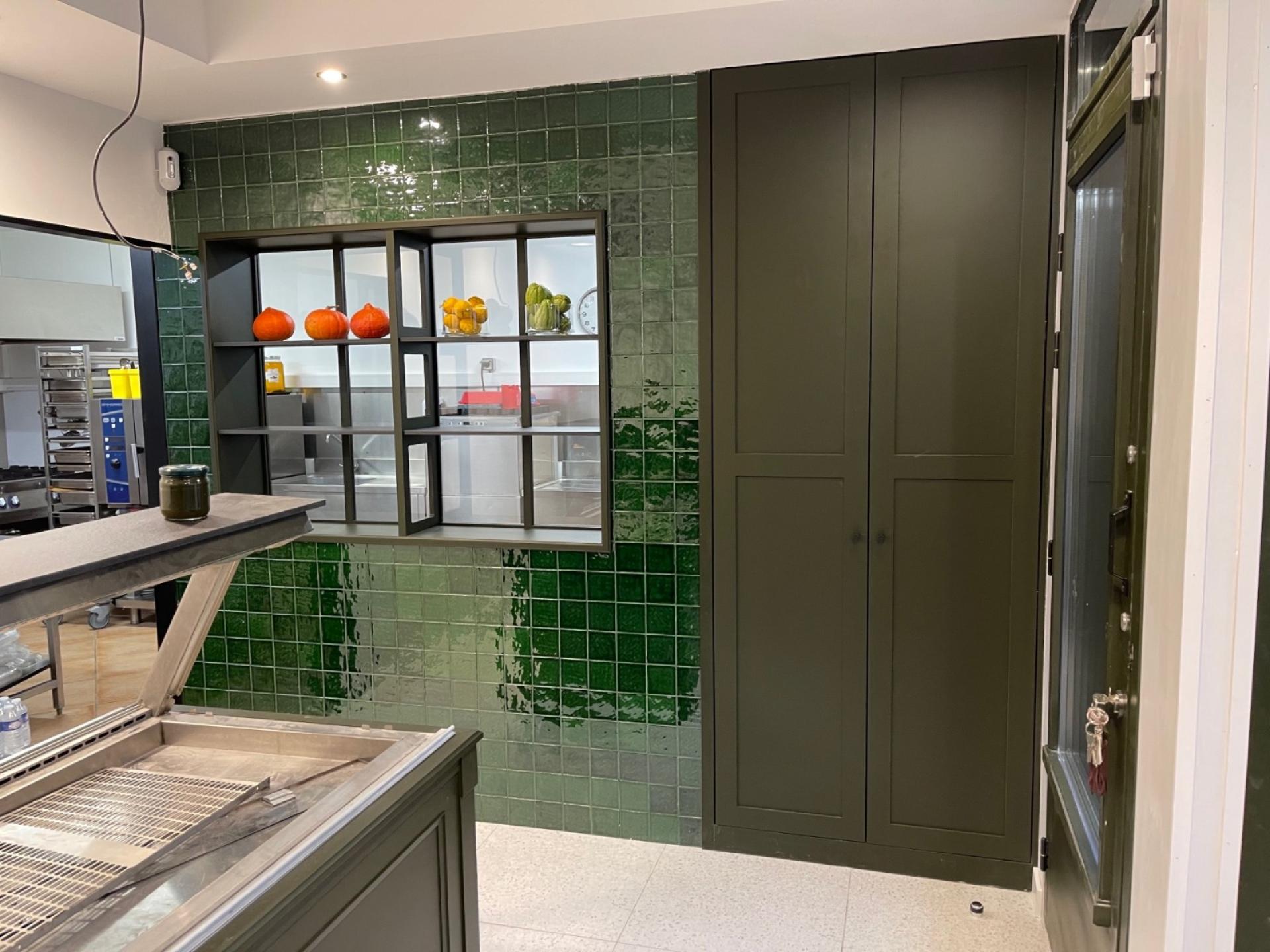 Cette couleur vert anglais donne un côté qualitatif à ce magnifique magasin traiteur de Bordeaux.