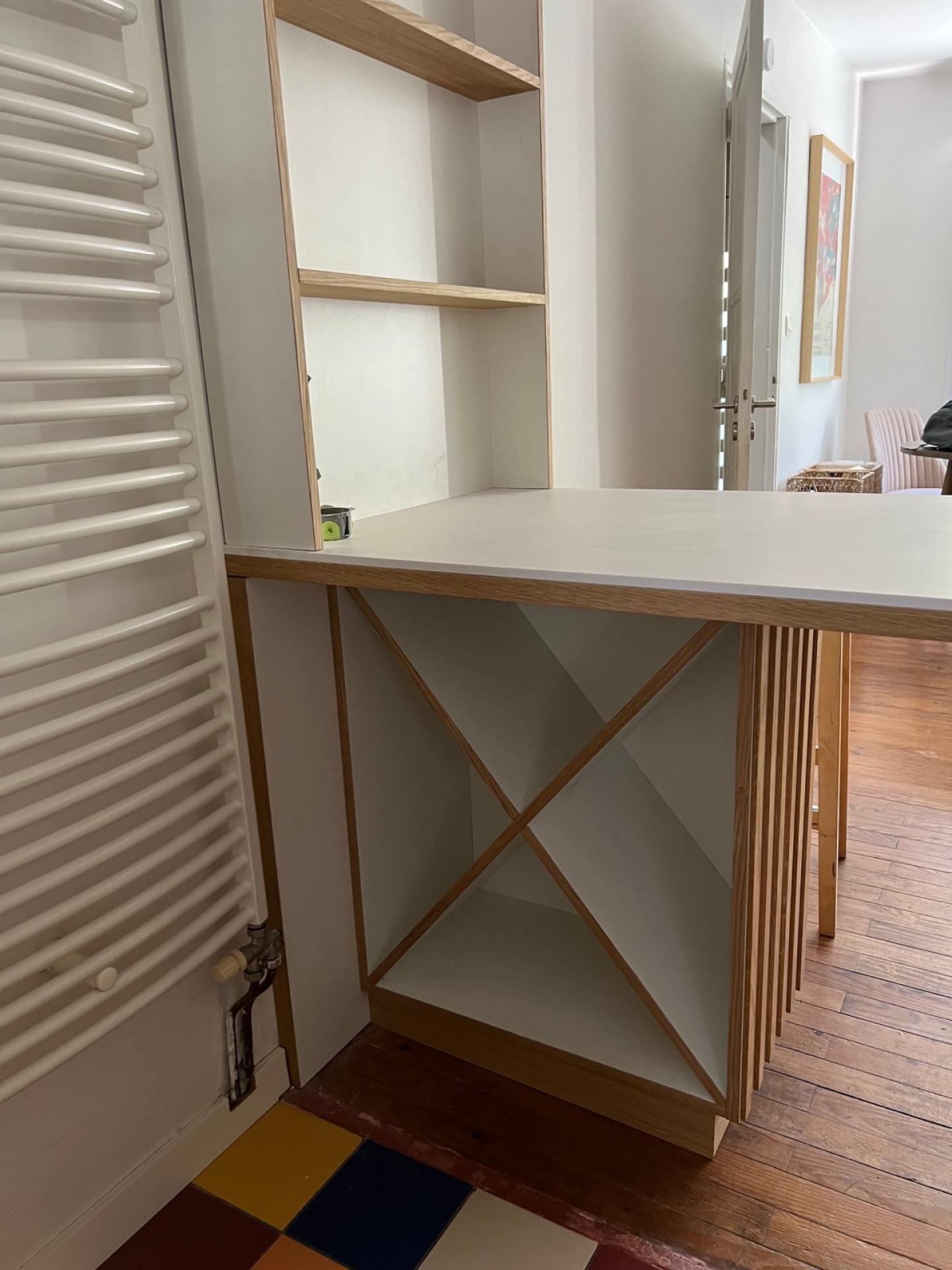 îlot sur-mesure est équipé de claustras, ce qui le rend très aérien.