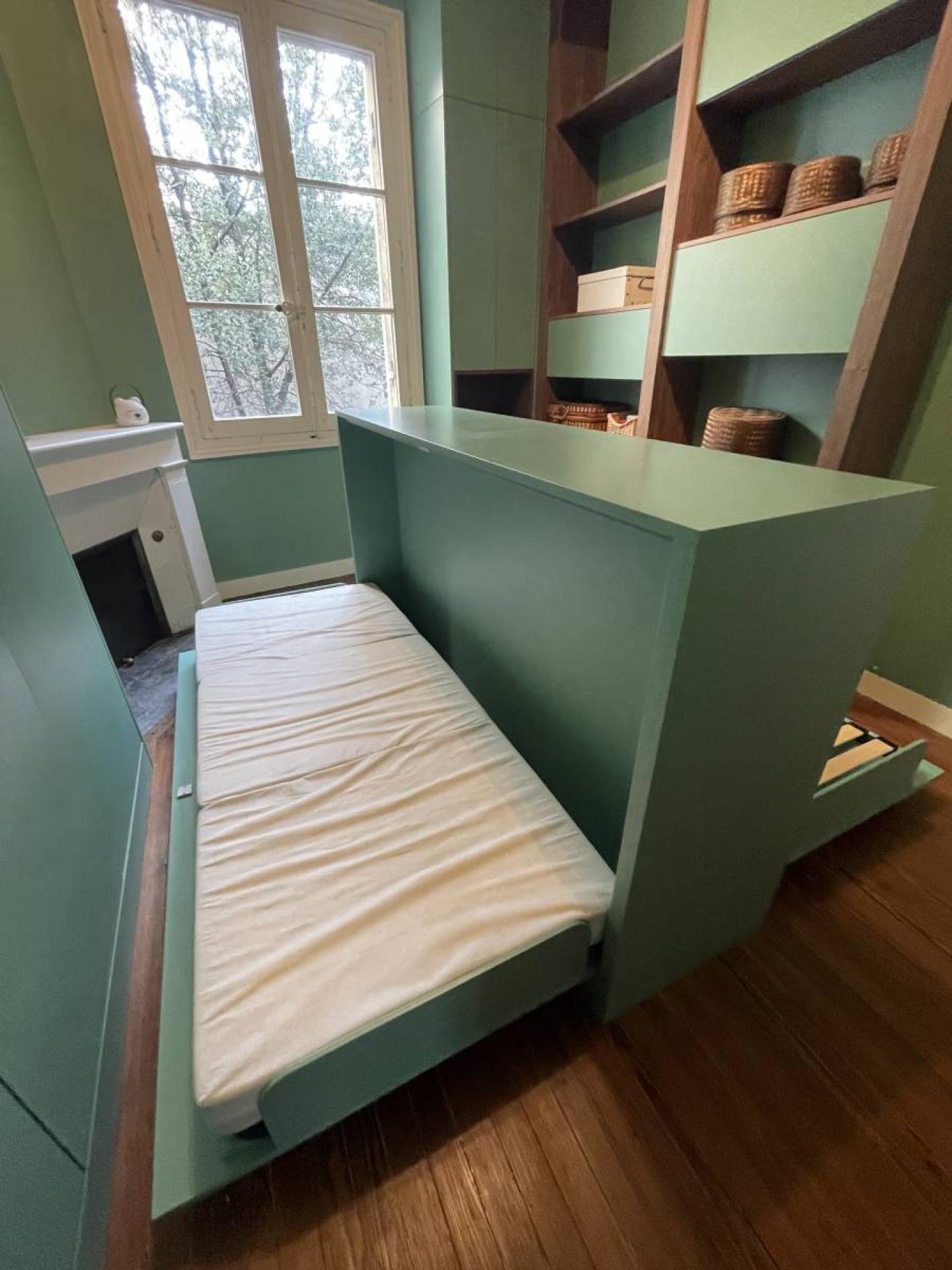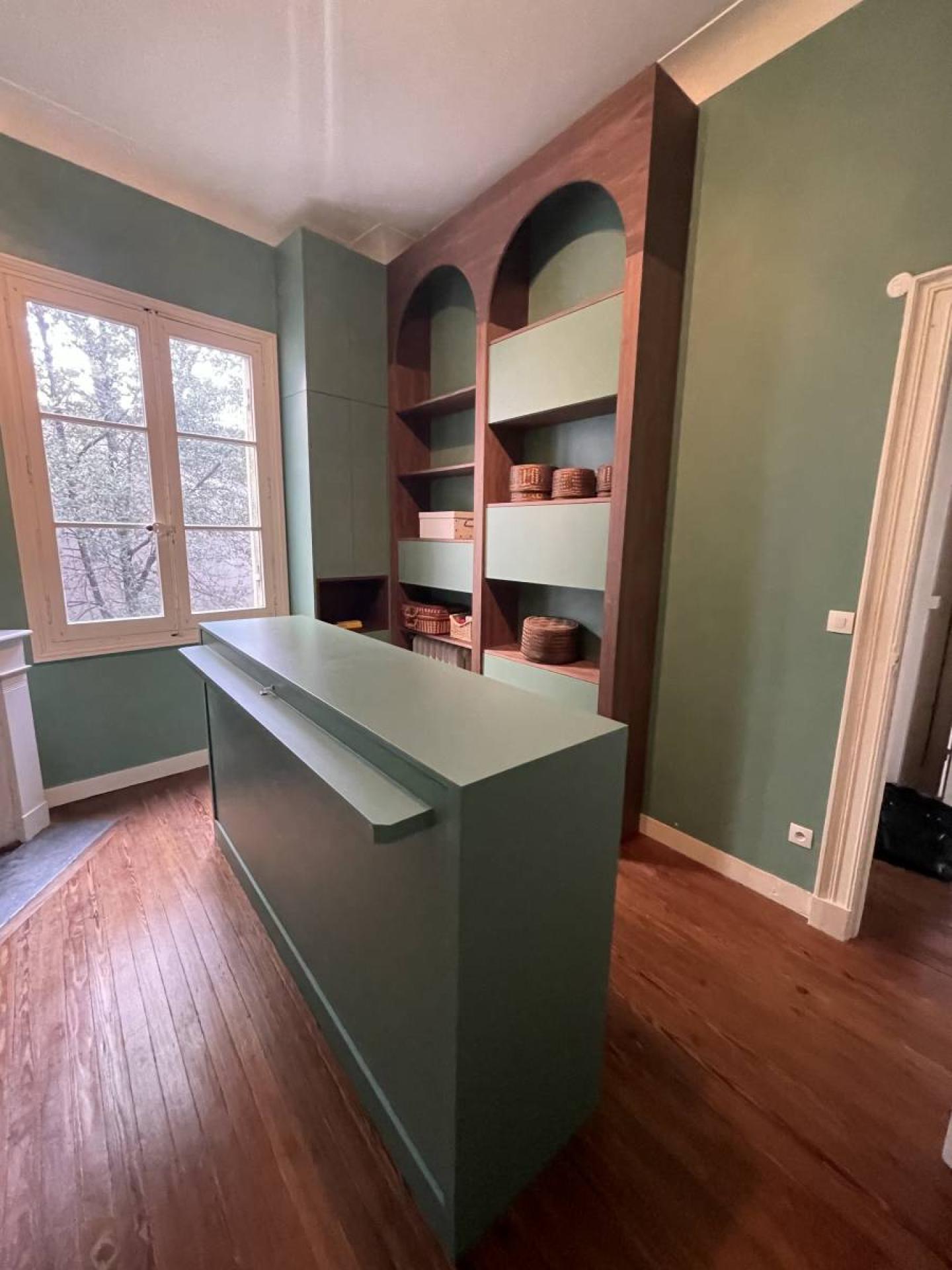 rangements sur mesures s'adaptent parfaitement à la pièce de cet appartement à Bordeaux.