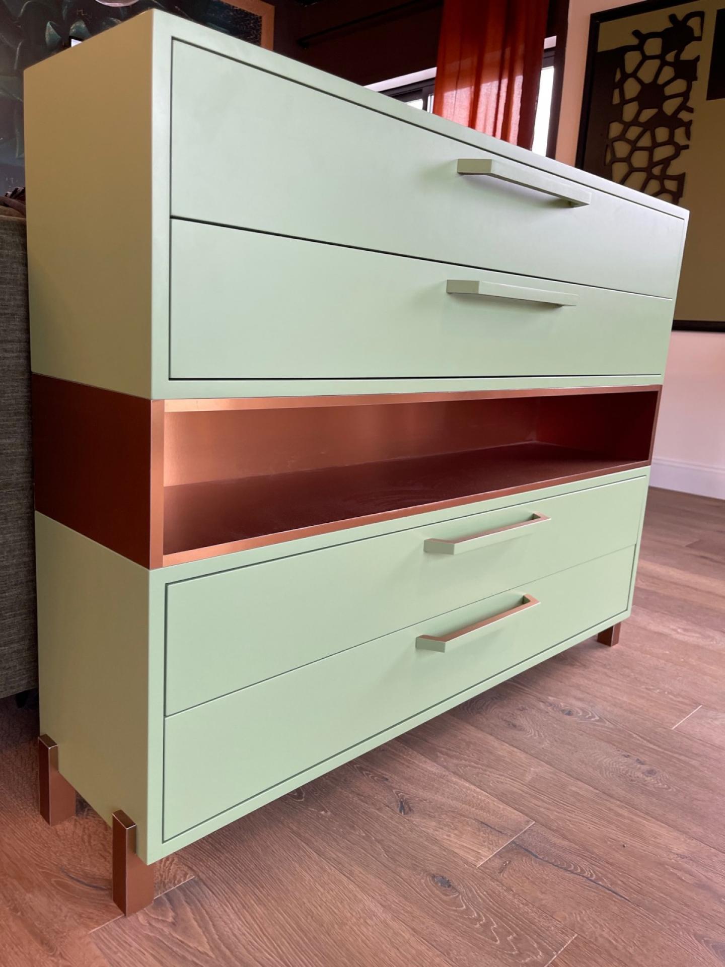 Le meuble a été dessiné et fabriqué entièrement sur-mesure.