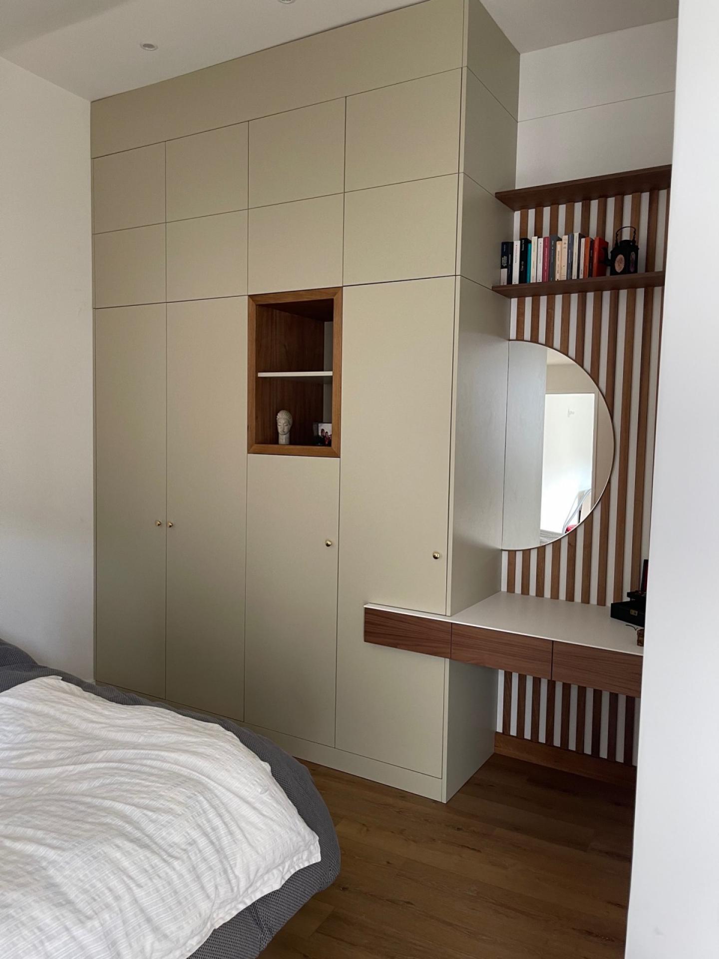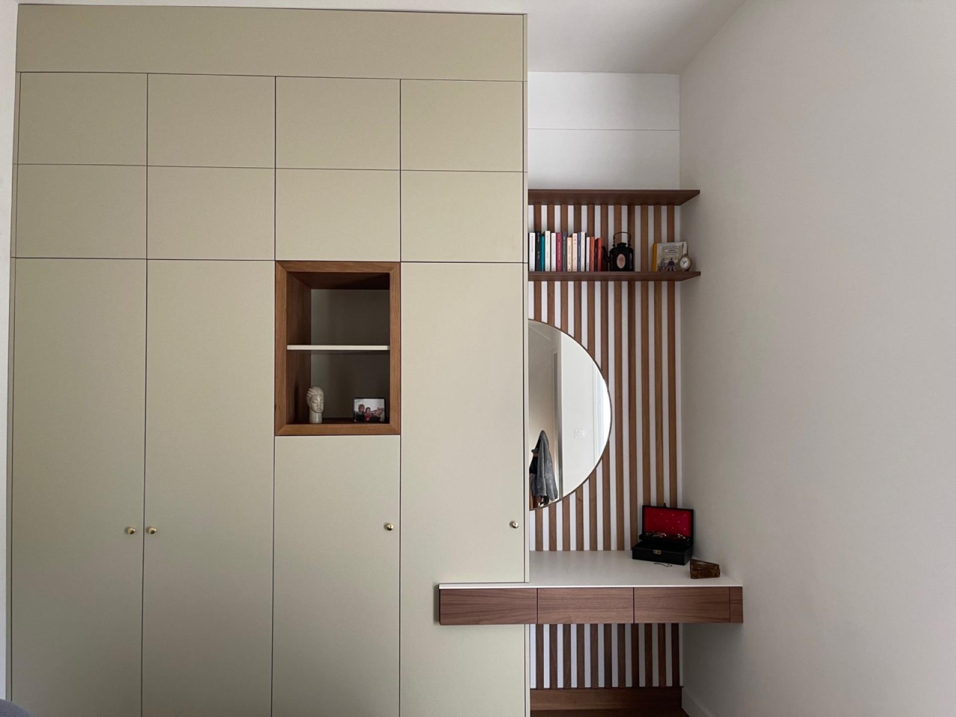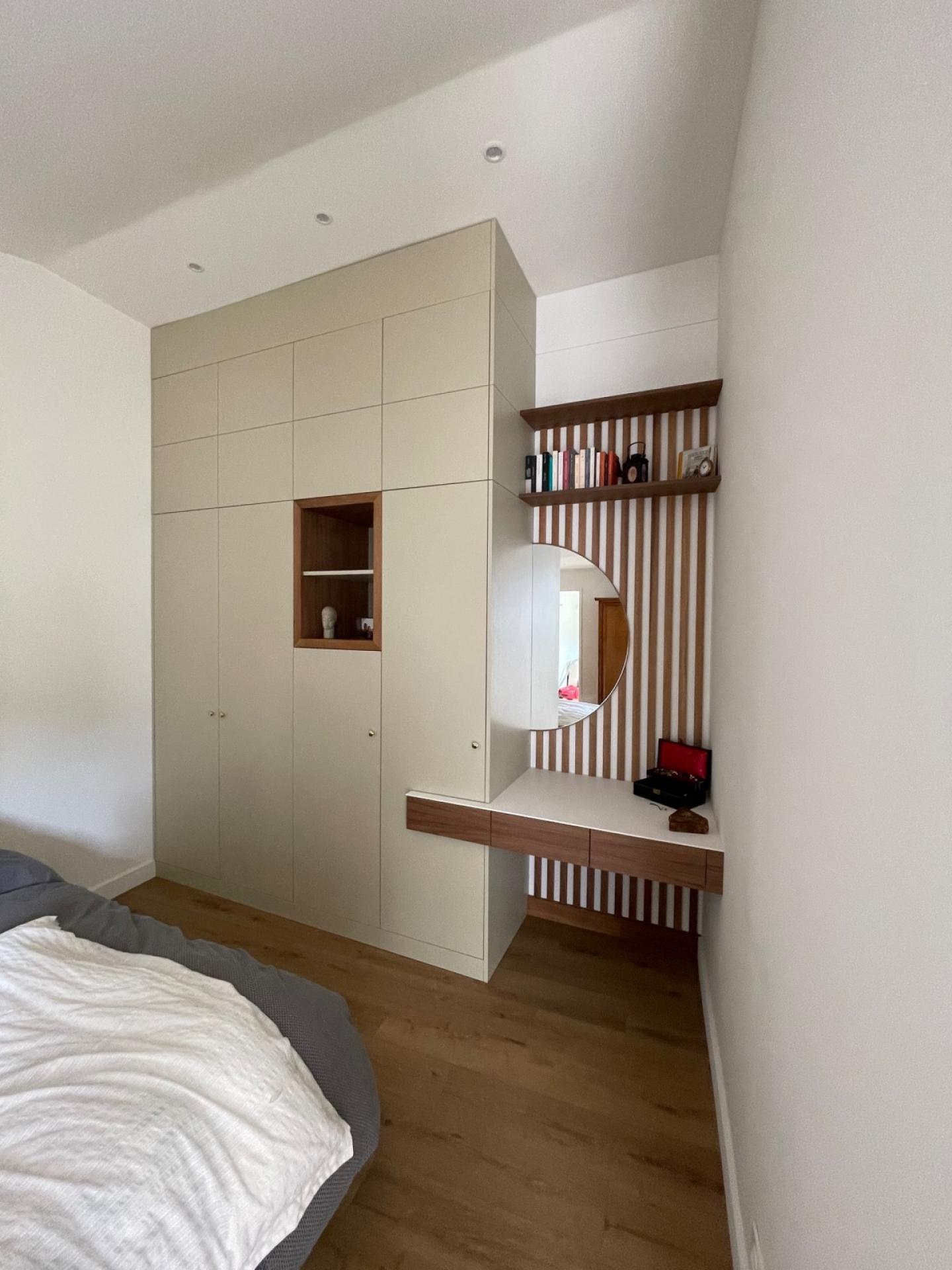 dressing en MDF laqué et noyer sur la commune de Bordeaux.