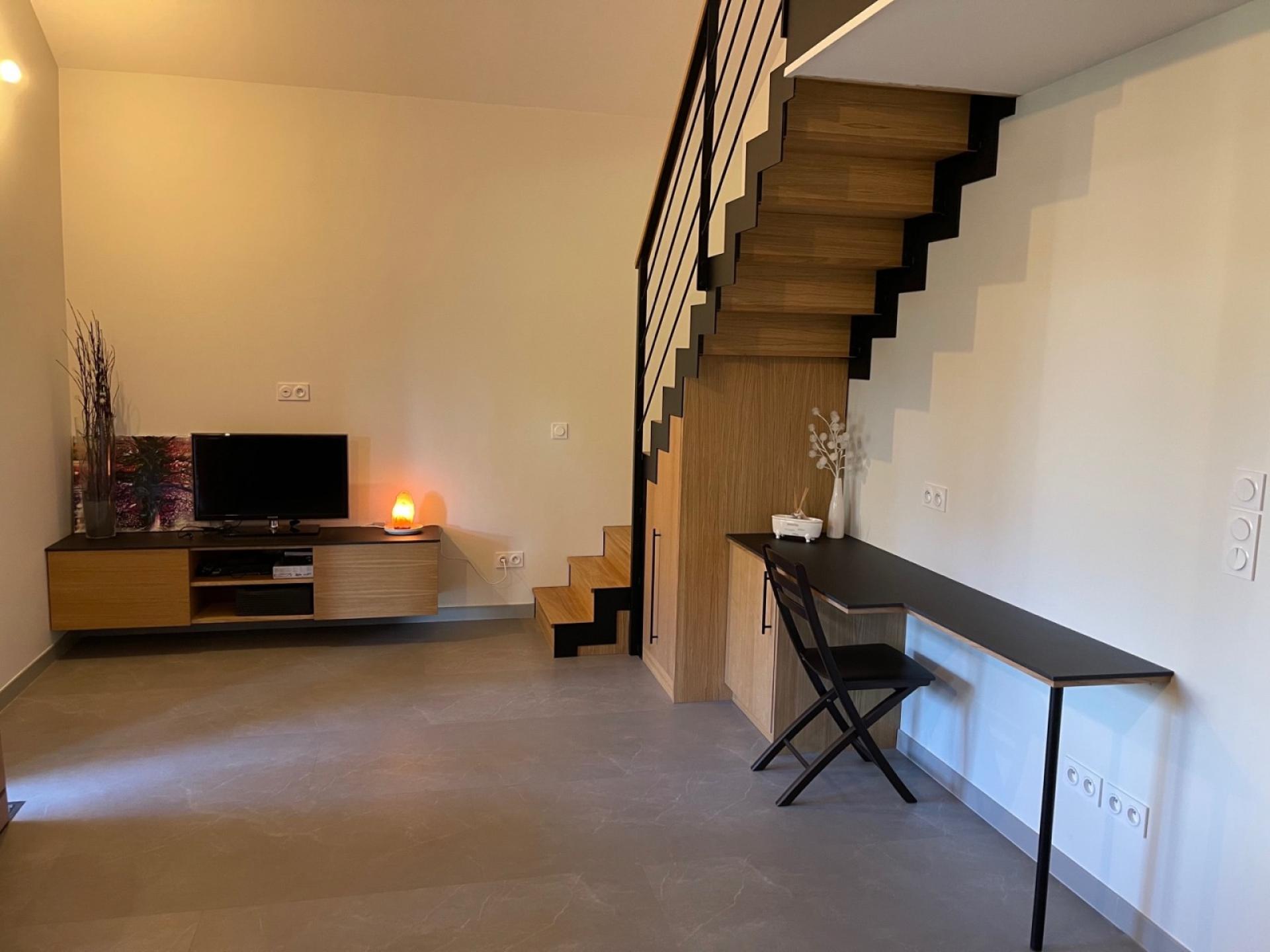 L’extractible est camouflé sous l’escalier, ce qui permet un gain de place et d’optimiser le rangement.