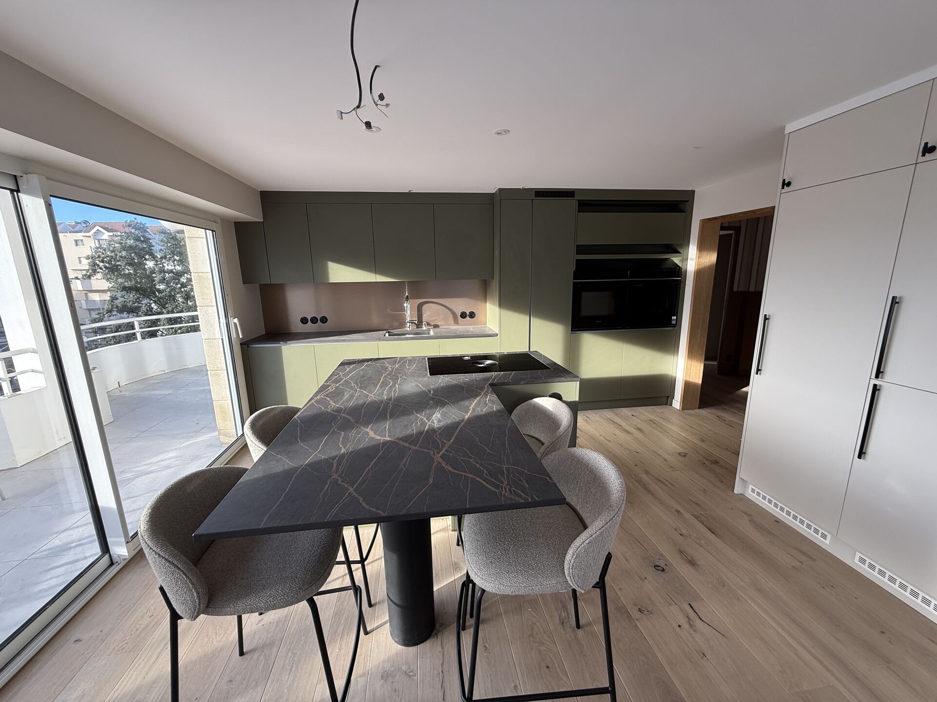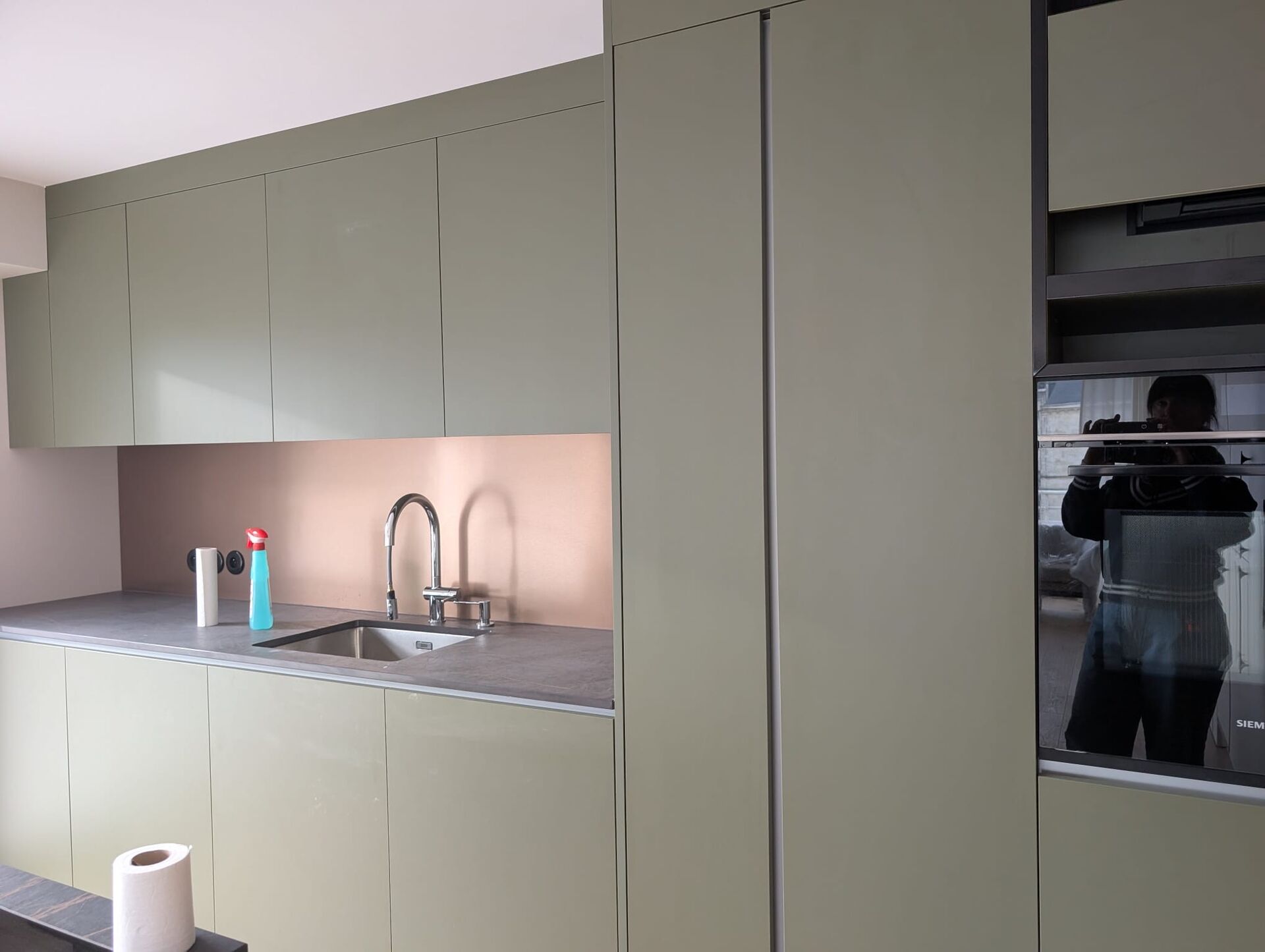 La cuisine se compose de linéaires sur mesure intégrant rangements toute hauteur, électroménager encastré et zones techniques, avec des façades aux lignes épurées et sans poignées apparentes. Chaque élément est fabriqué sur mesure afin d’optimiser les volumes, la circulation et le confort d’utilisation au quotidien. Le choix de matériaux qualitatifs et durables garantit une finition soignée et une parfaite tenue dans le temps.