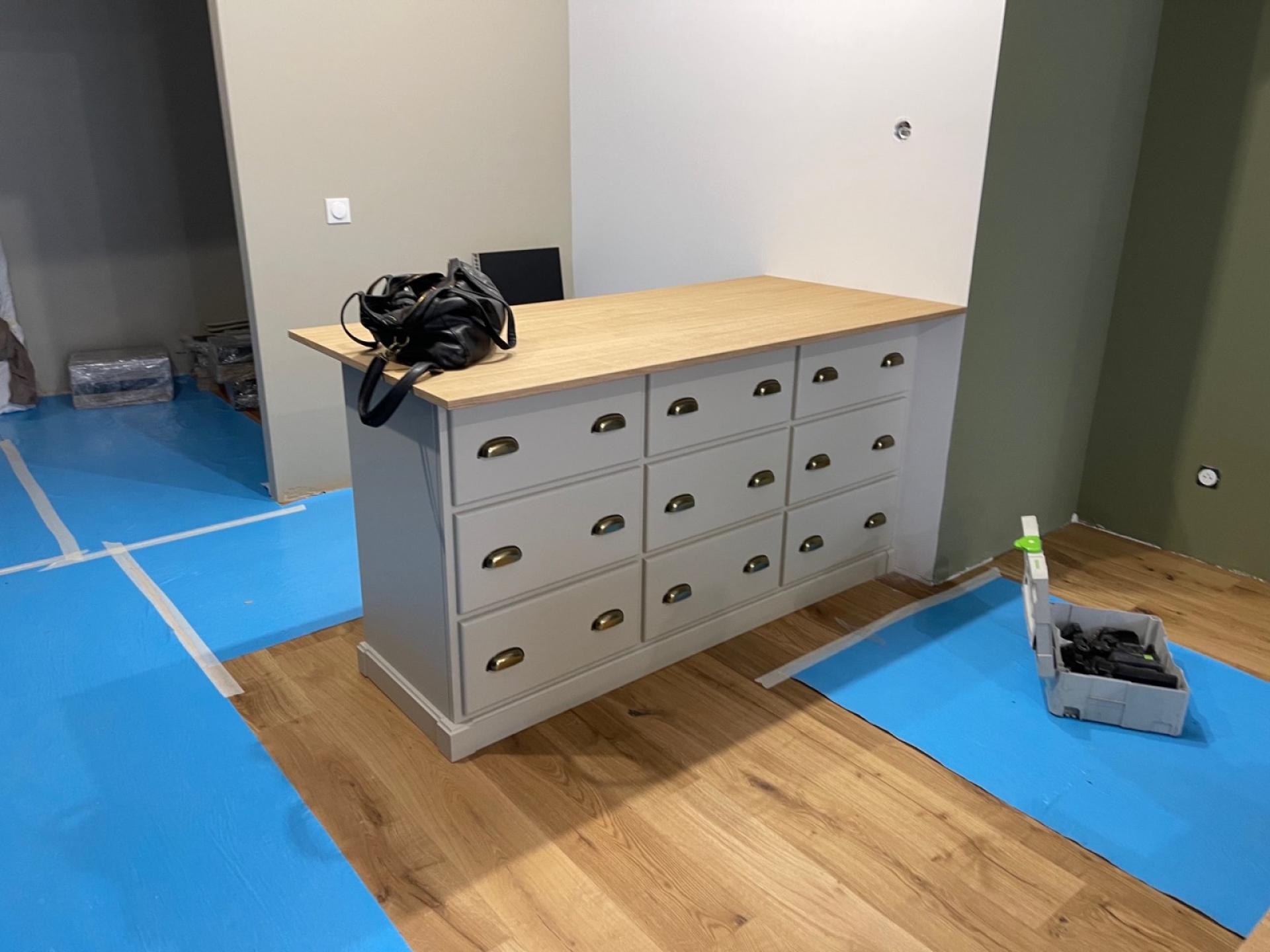 Tous les rayonnages ainsi que L îlot et la banque d’accueil ont été fabriqué dans nos ateliers à Marcheprime.
