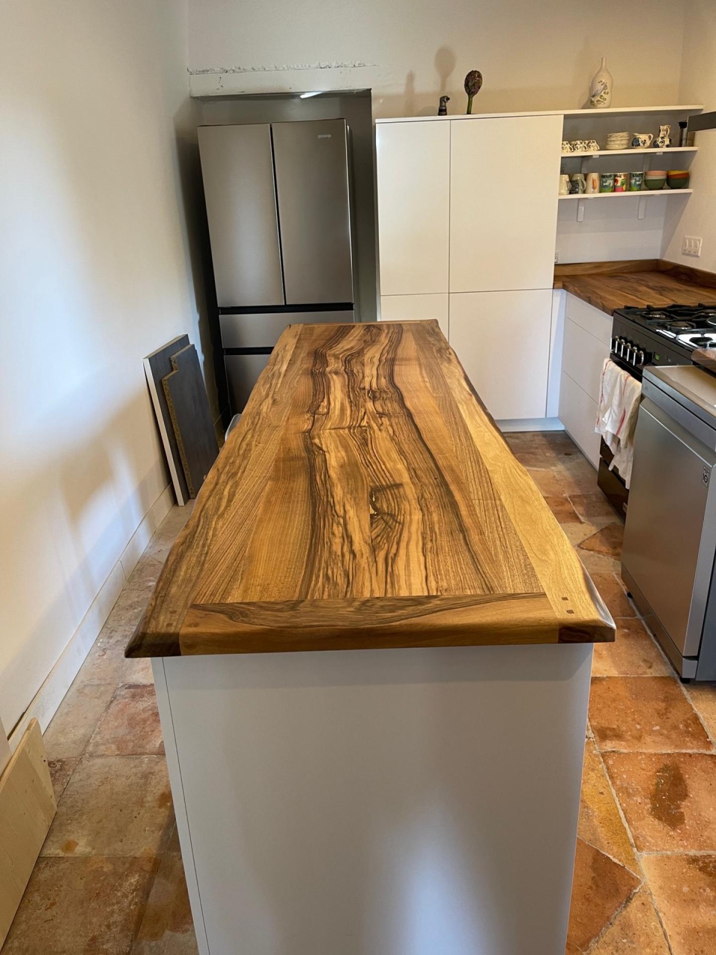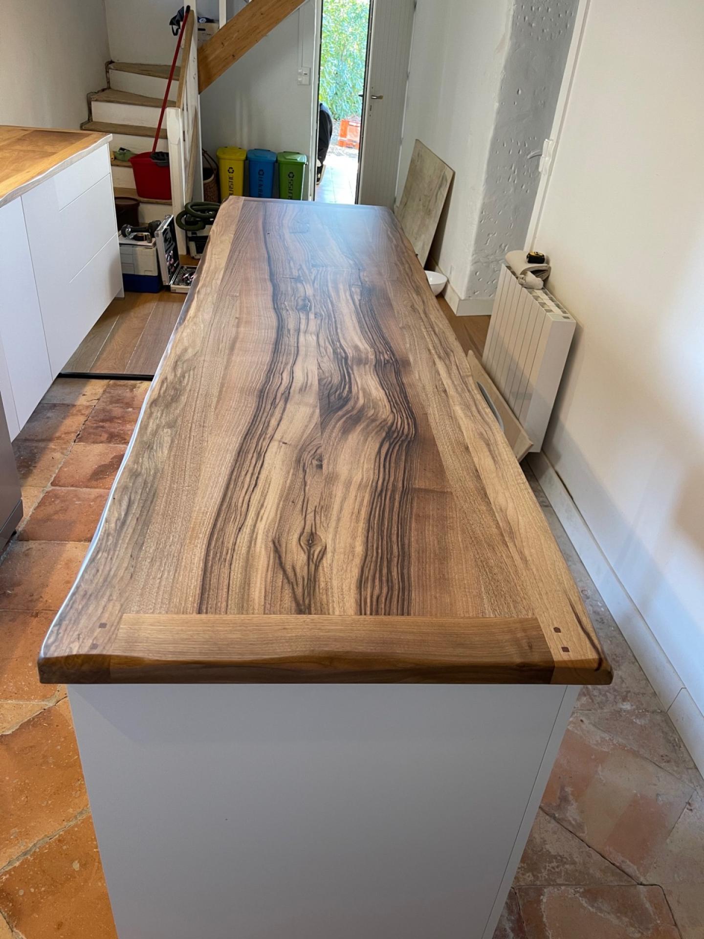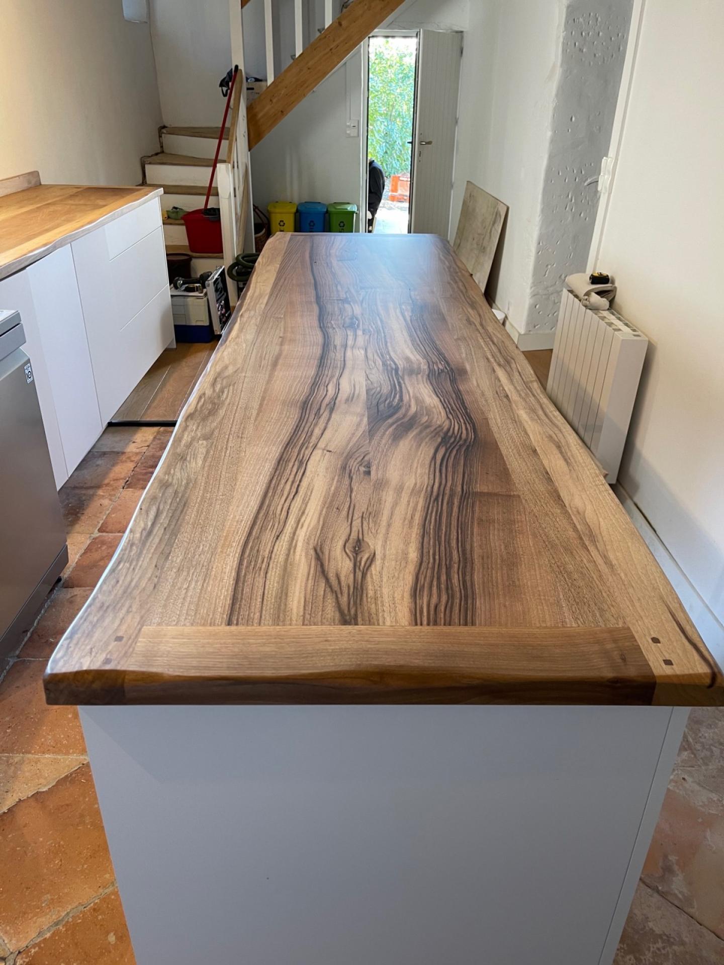 La société Lacoste Agencement vient de réaliser la fabrication ainsi que la pose de plan de travail de cuisine en noyer massif de France.