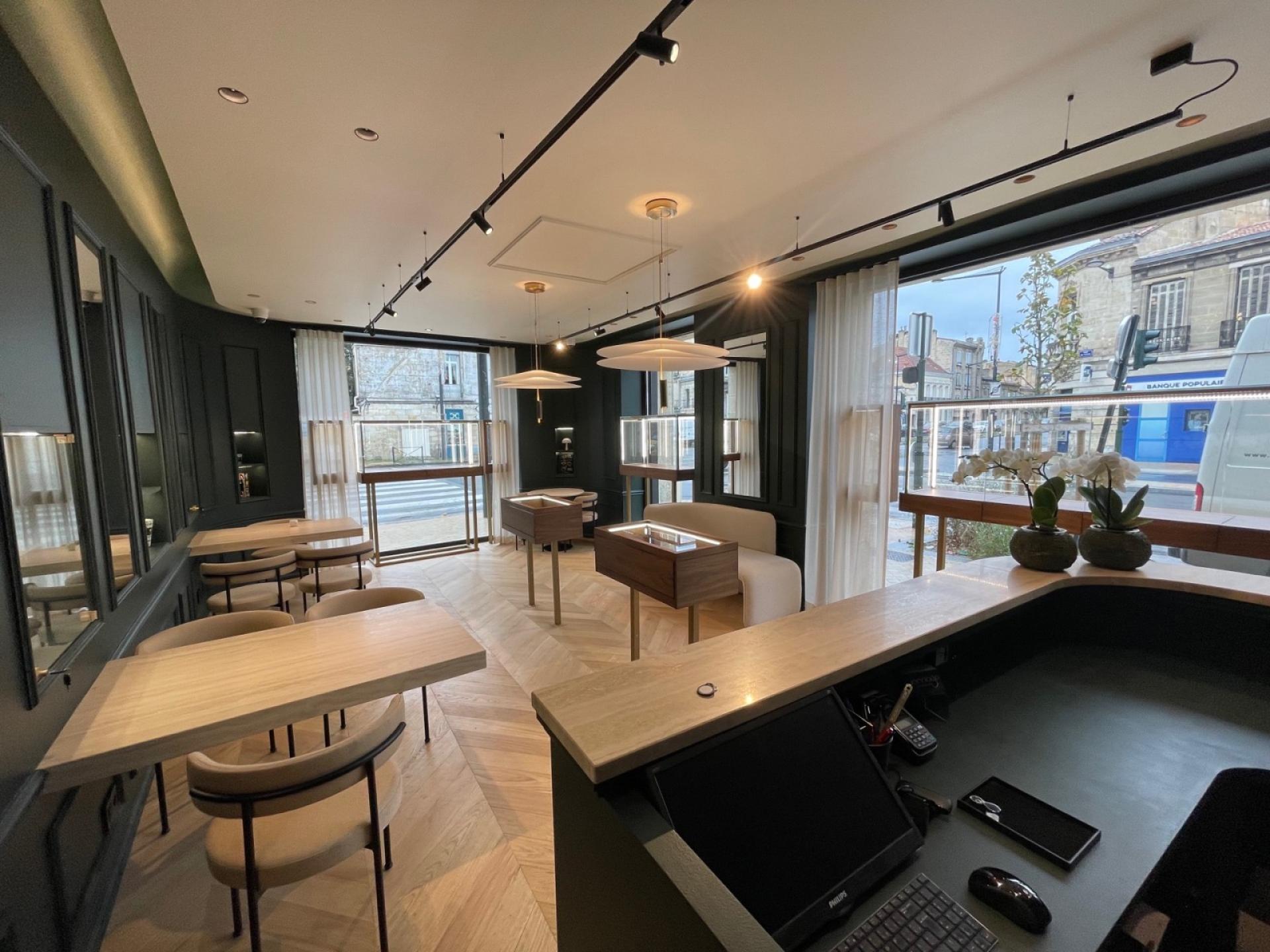 La société Lacoste Agencement, menuiserie haut de gamme située à Marcheprime, entre Bordeaux et le Bassin d’Arcachon, vient de réaliser la fabrication et la pose d’un agencement sur mesure pour une bijouterie haut de gamme à Bordeaux.