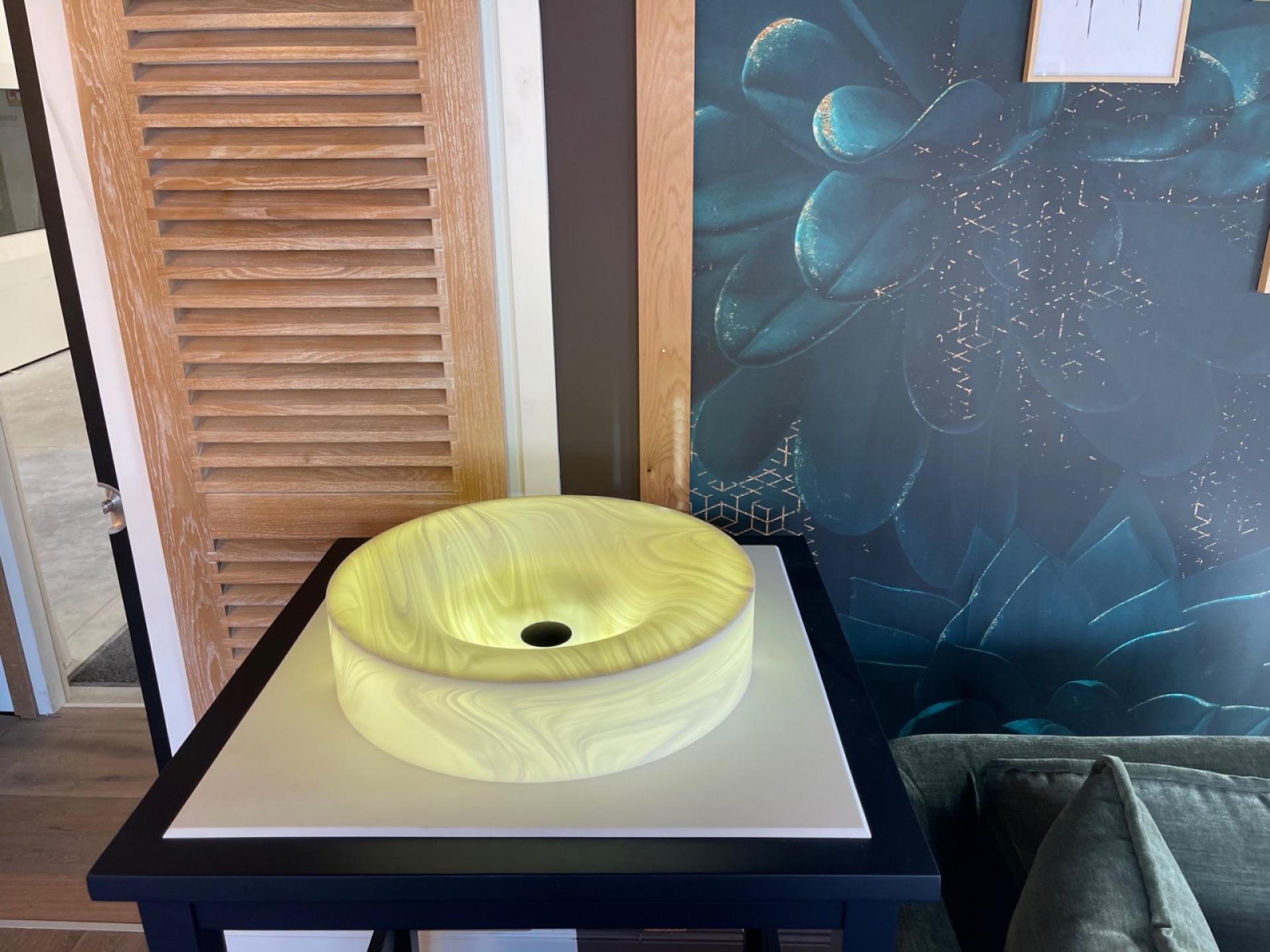 Chaque vasque est conçue sur-mesure selon vos envies, par notre équipe de menuisiers qualifiés, dans nos ateliers à Marcheprime, en Gironde, . Forme, dimensions, coloris, rétroéclairage : tout est possible.