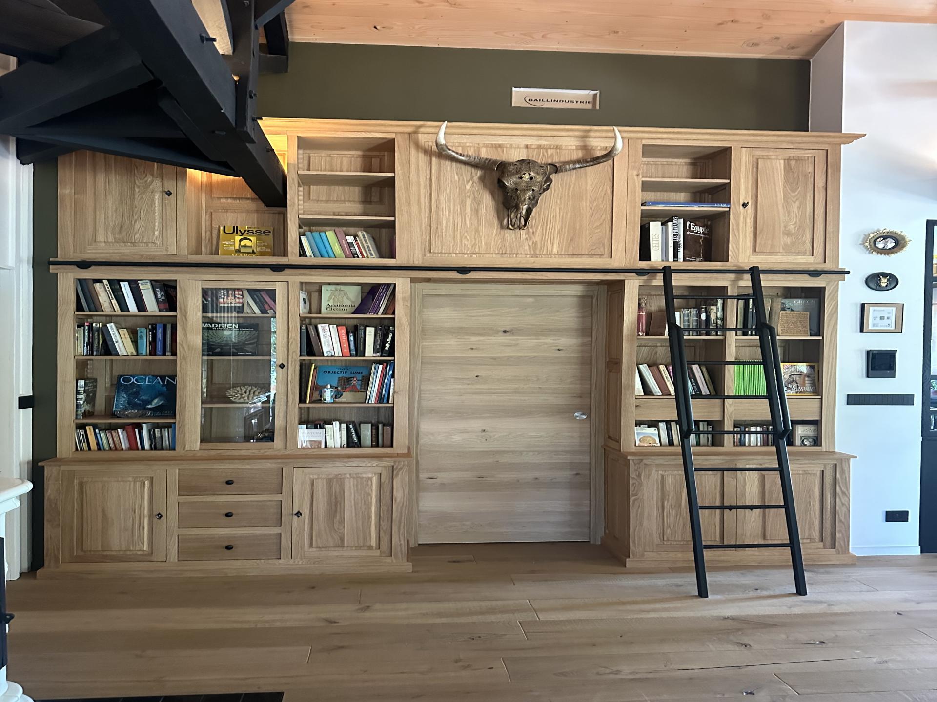 Bibliothèque haut de gamme en chêne fabriquée sur mesure à Marcheprime près de Bordeaux en Gironde